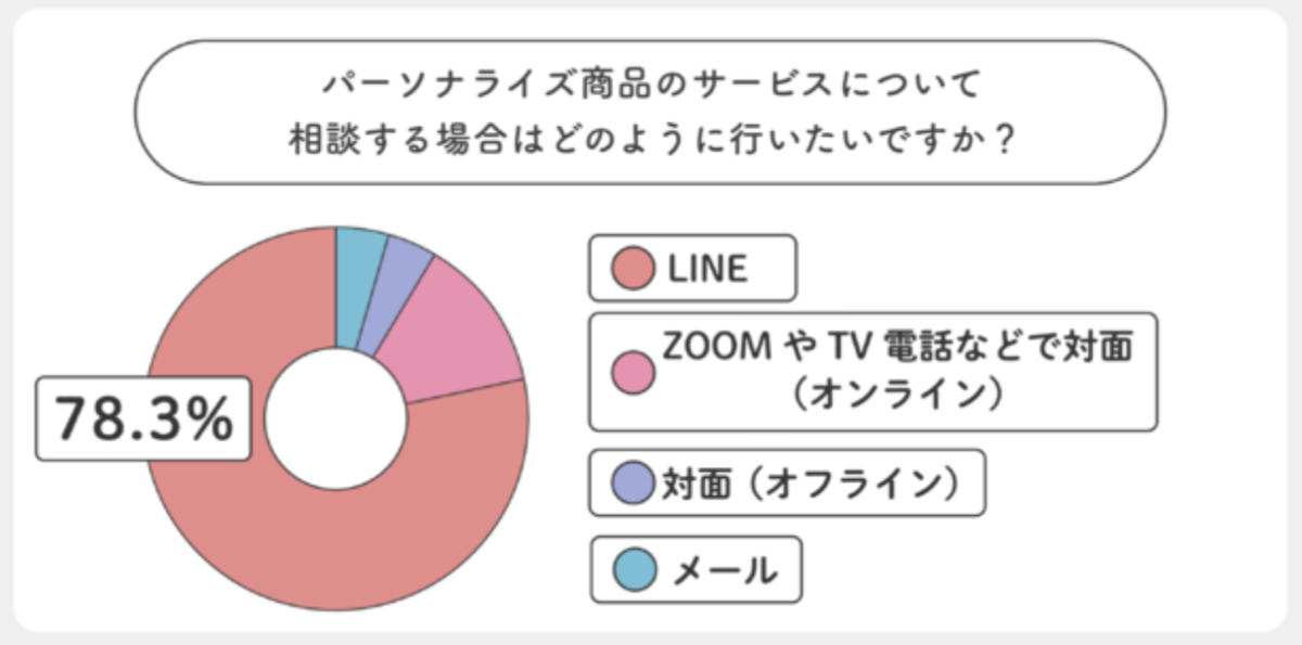 コロナ禍で受診できないという状況もあり、LINEで相談できることに魅力が感じている78.3%の人が相談はLINEで行いたいと回答。一方でZoomなど対面のオンラインも13%と需要があった。