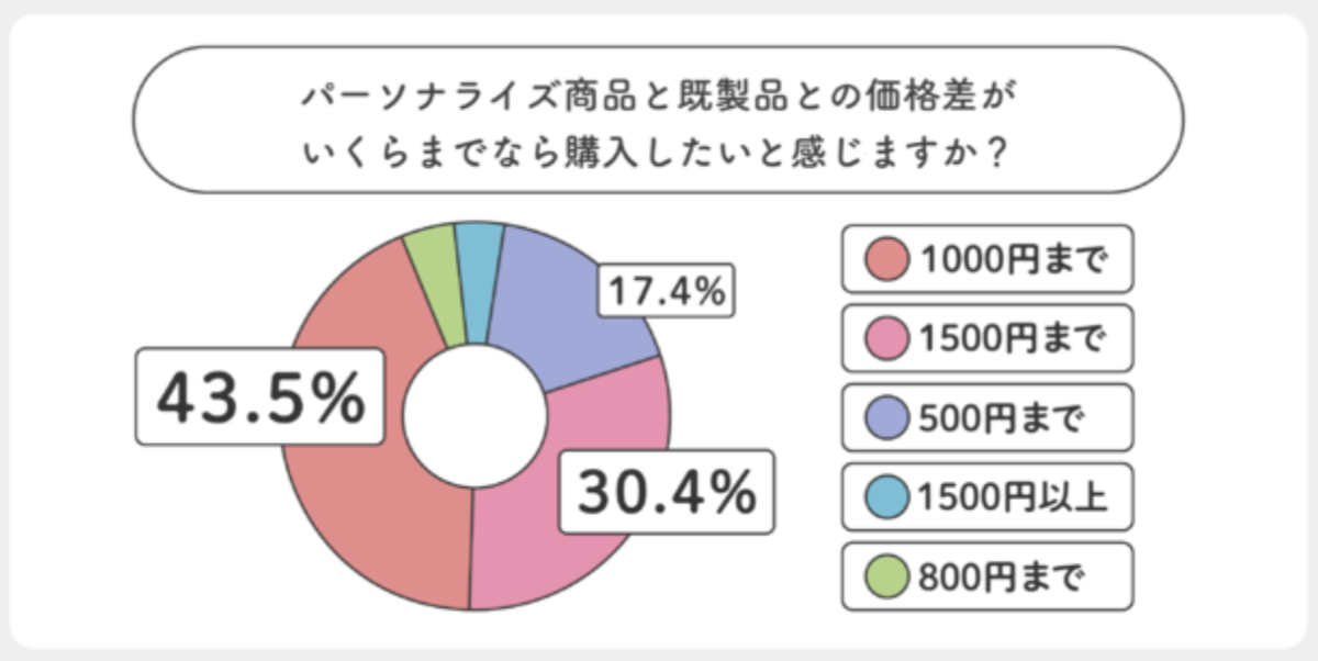 さらに、78.2%の人がパーソナライズ商品を既製品より1000円以上高くても買いたいと回答。