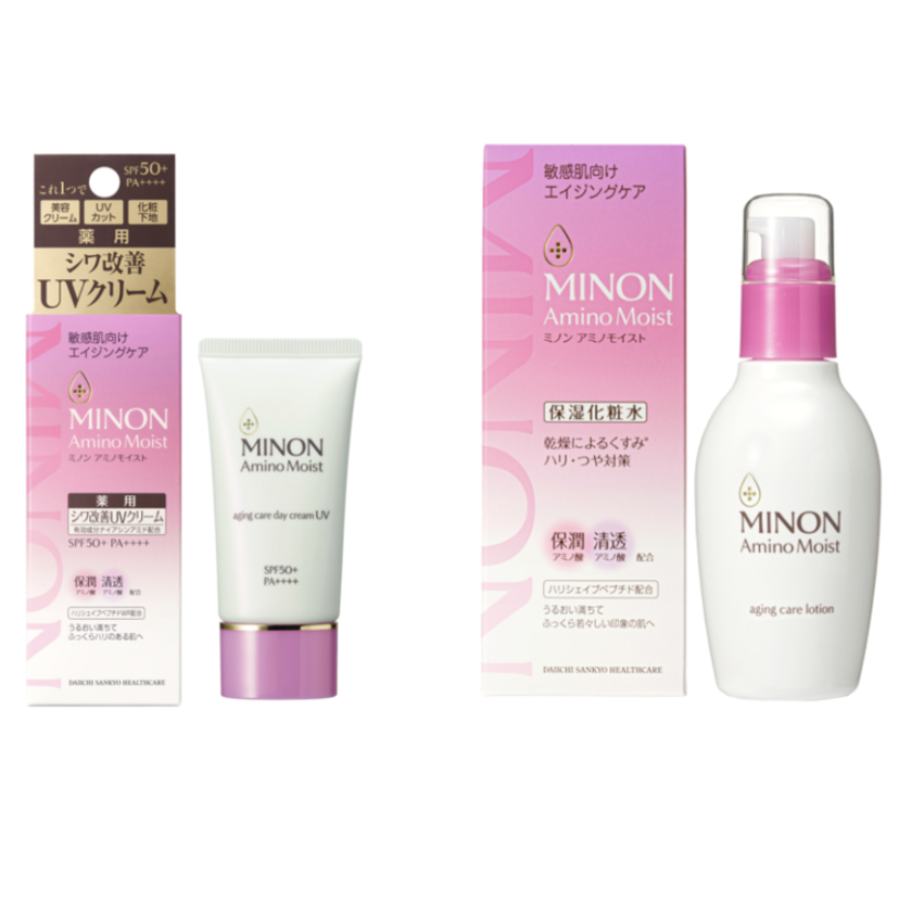 「ミノン アミノモイスト」は、肌のバリア機能に着目して生まれた敏感肌ケアのパイオニアブランドの1 つである「ミノン」の“低刺激性処方”の考え方に基づいて開発された敏感肌向けフェイスケアシリーズ。