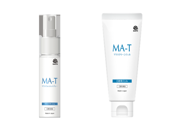 「MA-Tマウスウォッシュスプレー」&「MA-Tマウスクリーンジェル」 MA-T®はMatching Transformation System®の略で、亜塩素酸イオンから必要な時に、必要な量の活性種(水性ラジカル)を生成させることのできる先進的技術です。MA-T®の技術を用いた口腔ケア製品を活用することにより、口腔内を清潔に保つことを可能にしております。
